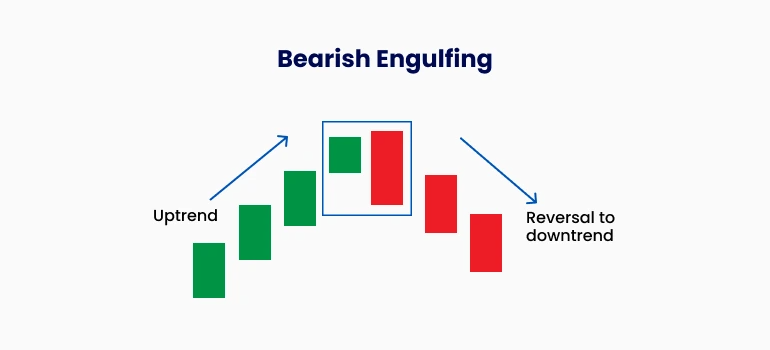 Description: A red (bearish) candle completely engulfs the previous green (bullish) candle.