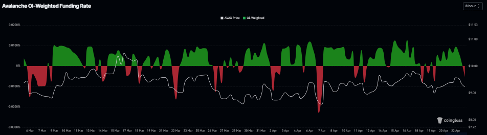 In addition, funding rates data also supports a bearish thesis. CoinGlass’ OI-Weighted Funding Rate data for Avalanche flipped negative on Thursday, reading -0.0054%, indicating that shorts are paying the longs and projecting a bearish outlook.