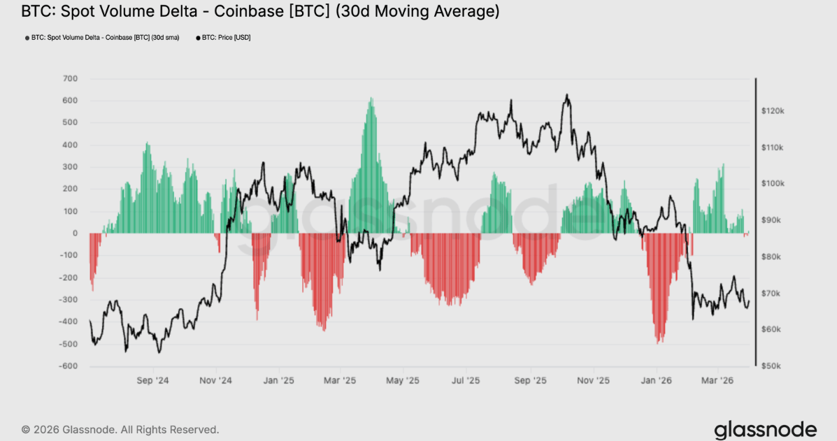 BTC Spot Volume Delta (Coinbase). Source: Glassnode