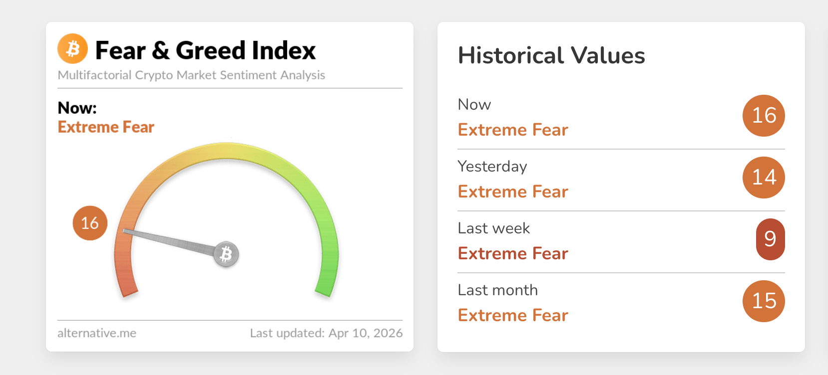 Despite the ceasefire in the Middle East, market sentiment has remained suppressed. The crypto Fear & Greed Index is reading 16 in extreme fear territory on Friday, up from 14 the previous day. If sentiment does not improve, risk-off mood could weigh on crypto assets, limiting recovery potential.