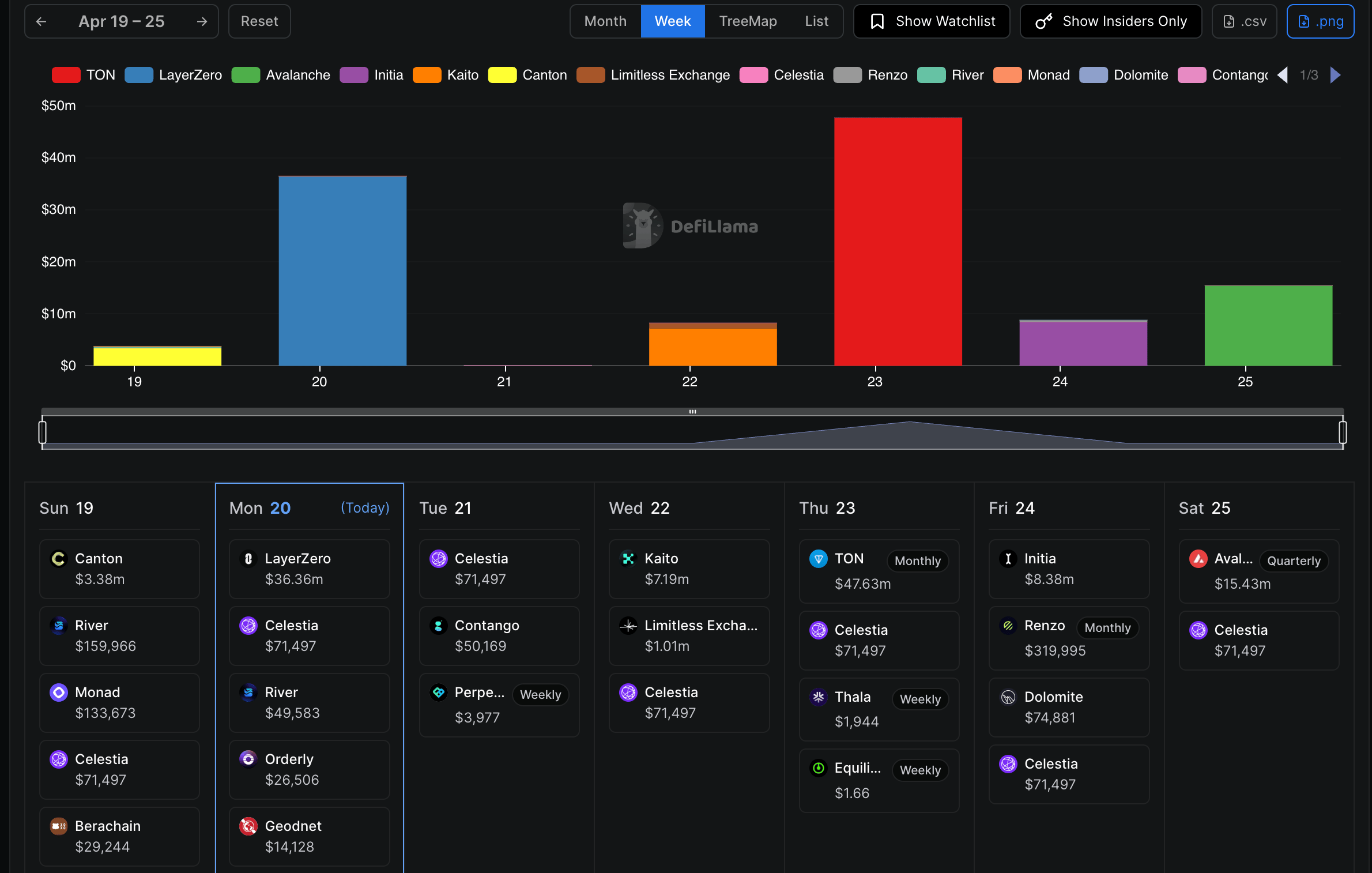 On Wednesday, the release will be primarily concentrated in Kaito, valued at $7.19 million, followed by Limited Exchange at $1.01 million and Celestia at roughly $8 million. Meanwhile, the largest unlocked will fall on Thursday, totaling $47.7 million.