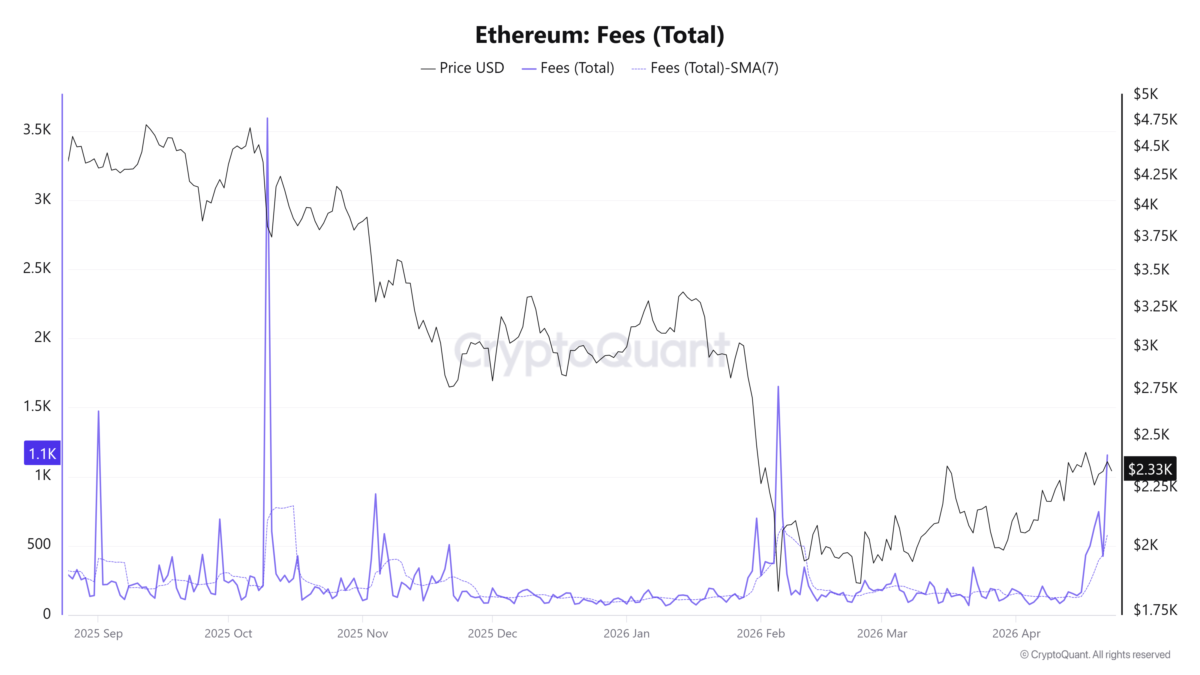 - Ethereum total fees have spiked to their second-highest level since the October 10 leverage flush.