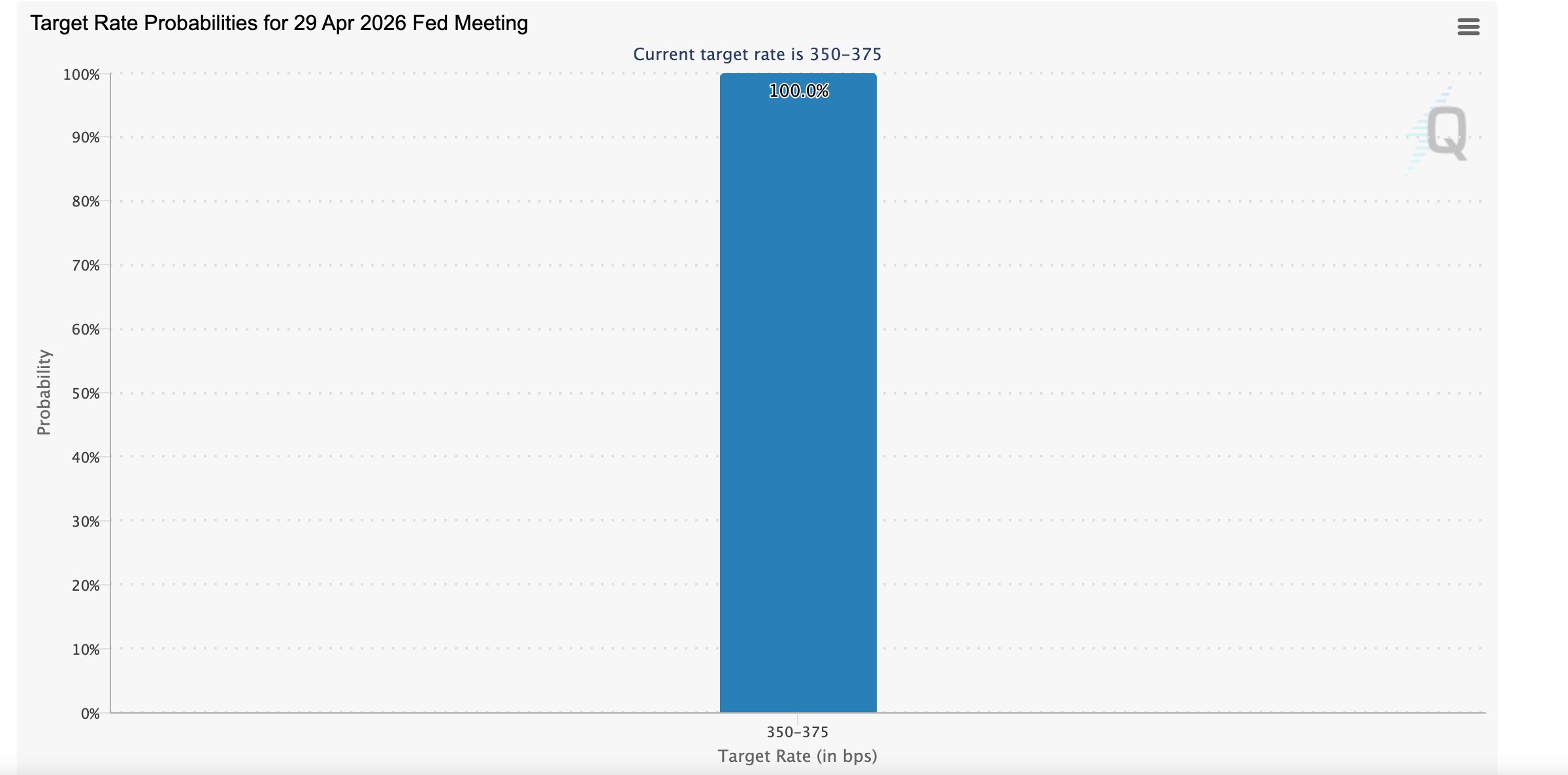 “The market now turns to the FOMC decision on 28–29 April, which is likely contributing to caution at the margin,” a CoinShares report states.