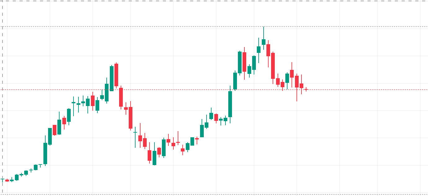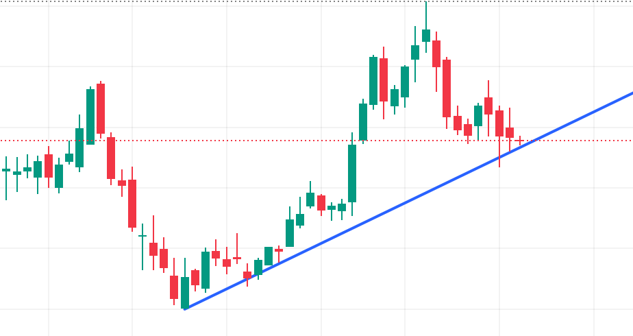 To draw a trendline, you will need to find the trendline tool in the chart that you’re using. Usually, it will look like a slanted line, and might have a description that calls it ‘Trendline’.