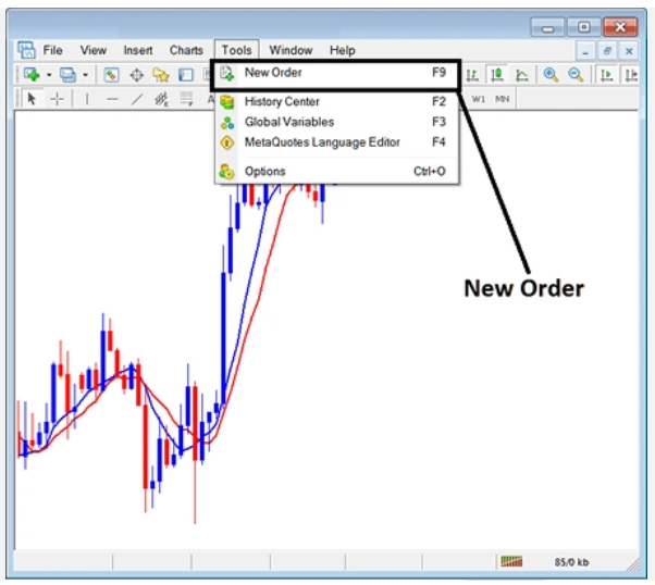 Placing a trade is simple. Click “New Order,” select your desired trading instrument, set the trade size (lot), choose your stop-loss and take-profit levels, and execute the order. You can also monitor open positions and account balance directly in the “Terminal” section.