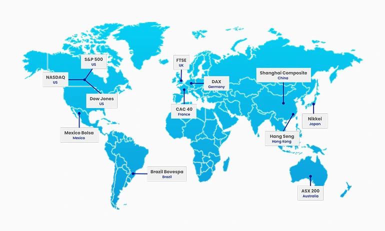 • Includes key indices from US, European, and Asia-Pacific markets.
