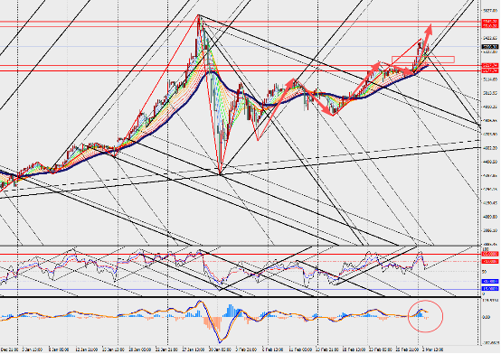 黄金4小时级别高位震荡,MACD双线和量能柱在零轴上方收敛。法国巴黎银行上周将2026年黄金价格预期上调27%至每盎司5620美元,并表示由于持续的宏观和地缘政治不确定性,预计到年底金价将达到每盎司6250美元以上的峰值。投资者将密切关注本周即将公布的一系列美国劳动力数据,包括ADP就业报告、每周初请失业金人数和非农就业报告。